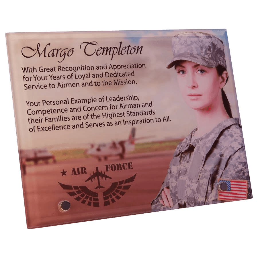 The sublimatable glass is perfect for corporate business recognition, sports recognition, academic recognition, car show recognition, and so much more! It’s perfect for any event with a bright white sublimatable coating on the back and crystal clear glass! Includes silver pin for standing. Tempered glass.